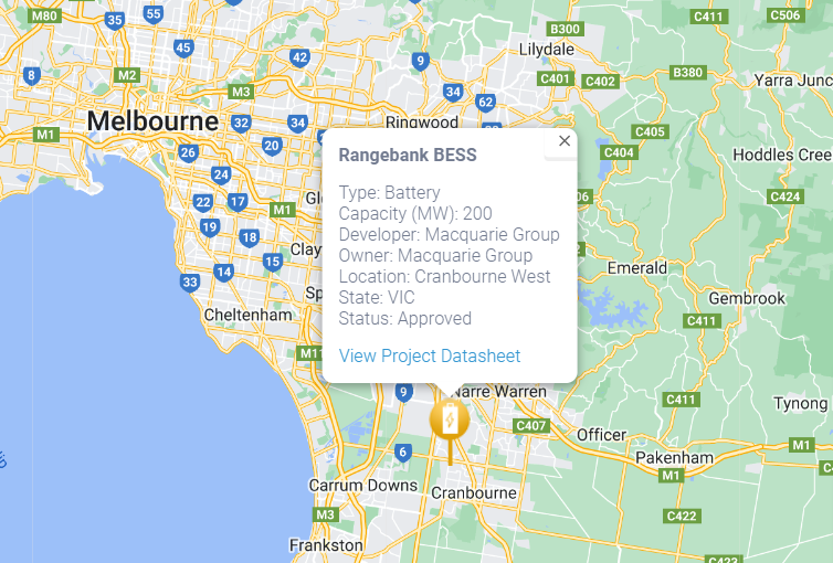 Macquarie Group also has state government planning approvals for the 200 MW/400 MWh Rangebank Battery Energy Storage System in Cranbourne West, Victoria.